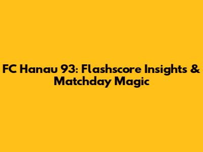 FC Hanau 93: Flashscore Insights & Matchday Magic