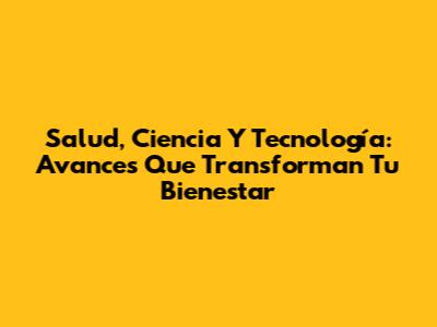 Salud, Ciencia Y Tecnología: Avances Que Transforman Tu Bienestar