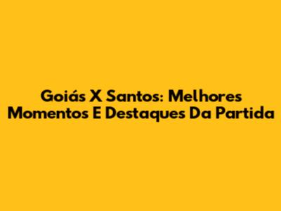 Goiás X Santos: Melhores Momentos E Destaques Da Partida