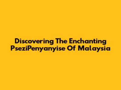 Discovering The Enchanting PseziPenyanyise Of Malaysia