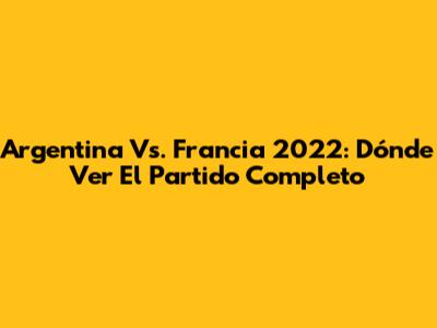 Argentina Vs. Francia 2022: Dónde Ver El Partido Completo
