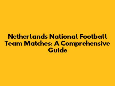 Netherlands National Football Team Matches: A Comprehensive Guide