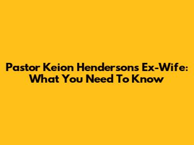 Pastor Keion Henderson's Ex-Wife: What You Need To Know