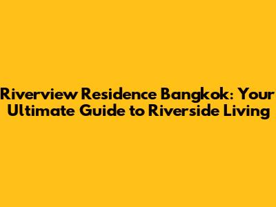 Hey guys! Planning a trip to Bangkok and dreaming of stunning river views? Well, you're in the right place! We're diving deep into the Riverview Residence Bangkok, exploring everything from its luxurious amenities to its prime location. Get ready for a comprehensive guide that covers everything you need to know to make your stay unforgettable. This residence is a fantastic choice for anyone looking for a blend of comfort, convenience, and breathtaking scenery. We'll be talking about what makes this place special, how to get there, and even some insider tips to make your trip even better. So, buckle up, and let's explore the world of riverside living in one of the world's most vibrant cities.